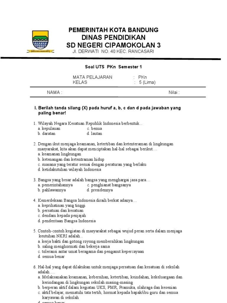Pancasila Soal Pkn Kelas 1 Sd Semester 2 / Soal UTS PKN Kelas 5 Semester 1.Doc Aa - Gambar di samping adalah salah satu sikap terpuji.